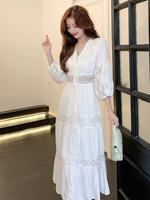 Das Elanvielle Maxikleid mit Spitzendetails verleiht Ihrer Garderobe für besondere Anlässe zeitlosen Charme. Mit aufwendiger Spitzenarbeit und einer anmutigen Silhouette bietet es sowohl Eleganz als auch Komfort.