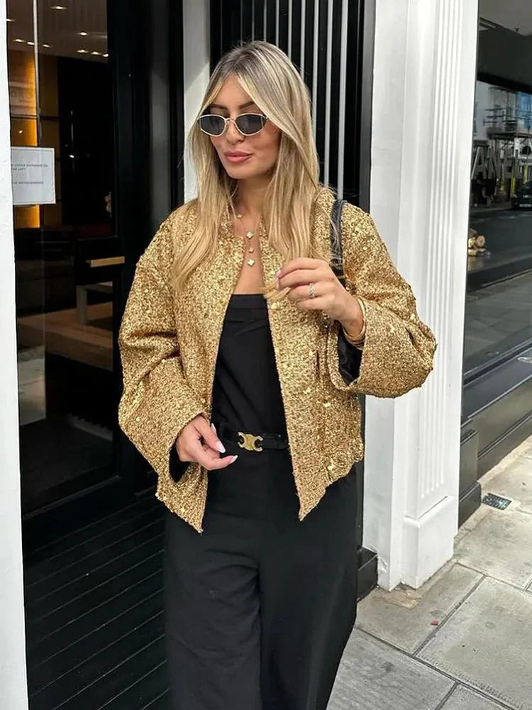 Kesia | Die Sequin Dream Bomberjacke kombiniert funkelnde Pailletten mit einem entspannten Bomberschnitt – perfekt für mutige, modische Looks.