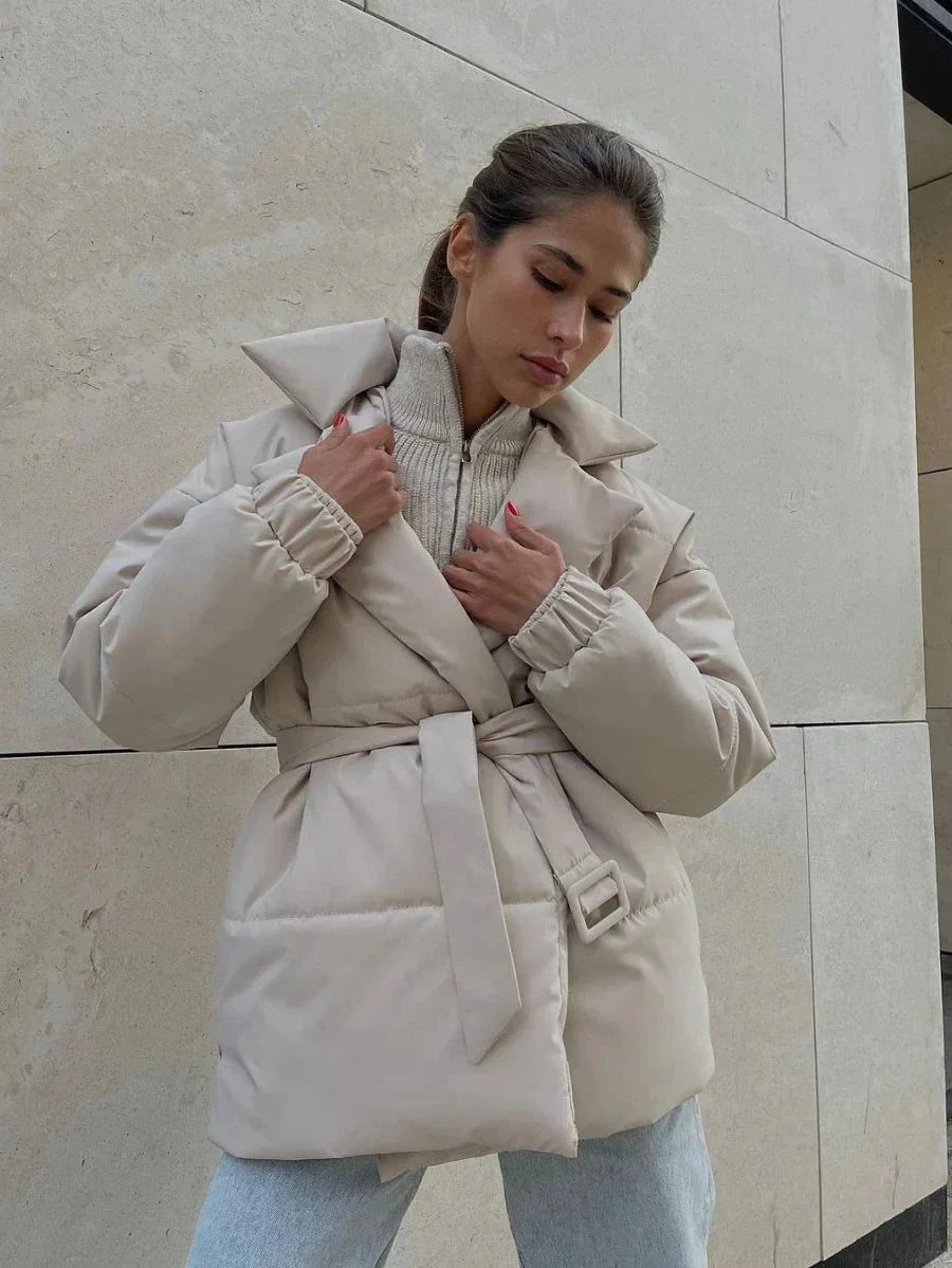 Der Nytherra Cinchcore Puffermantel mit Gürtel bietet kuschelige Isolierung und eine stylische Silhouette. Mit seinem taillenbetonenden Gürtel und der weichen Polsterung ist er Ihr Winter-Essential für lässige und elegante Looks.